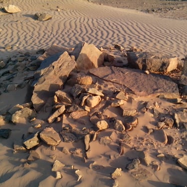 Day 3: Exploring the Necropolis & Rock Art A day dedicated to the mystery of Foum Rjam. We will hike through miles of conical stone tumuli and search for the rare prehistoric rock paintings and engravings that survived time. A place where Jewish, Christian, and Almoravid legends collide.