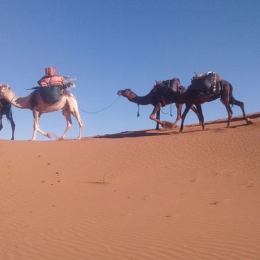 Transfer back to Tagounite. Enjoy free time to explore the ancient Kasbahs—a true walk through time—or visit the local hammam for a traditional scrub. Dinner and overnight stay at the guest house.