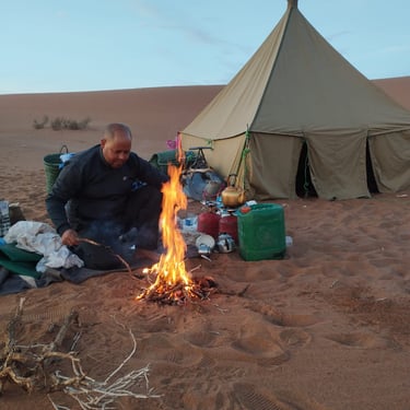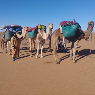 2."El Gran Trío" del Desierto a Pie. Experiencia inmersiva al cruzar a pie los tres grandes terrenos del Sáhara: Dunas (Erg), Piedra (Hamada) y Lago Seco (Reg).