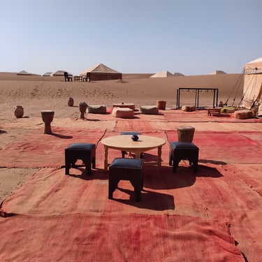 Día 3: Salida a las 10:00 horas, con el 4 × 4, cruzando la Hamada (desierto de piedra), para llegar al Oasis Sagrado donde tomaremos el almuerzo bajo las palmeras, sobre las 16:00 h salida para el mar de arena, las grandes dunas de Chegaga, con 300 m de altitud y más de 40 km de extensión. Cena con espectáculo folclórico, pasaremos la noche en tiendas nómadas.